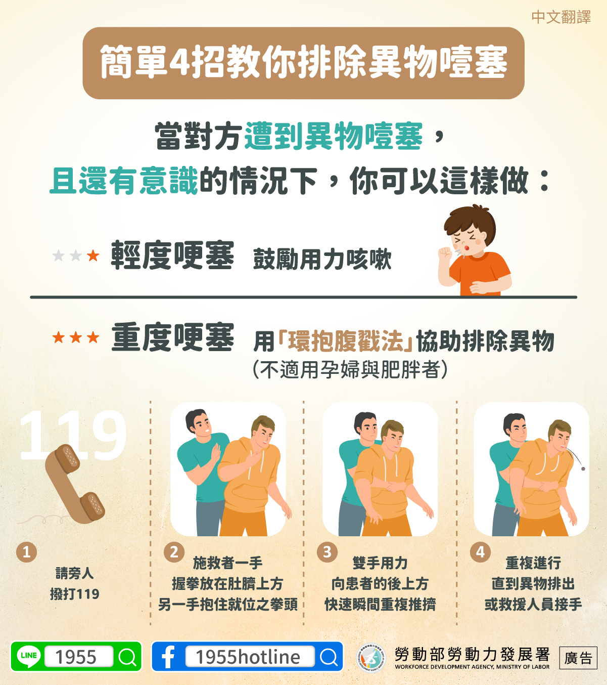 ▍簡單4招教你排除異物噎塞